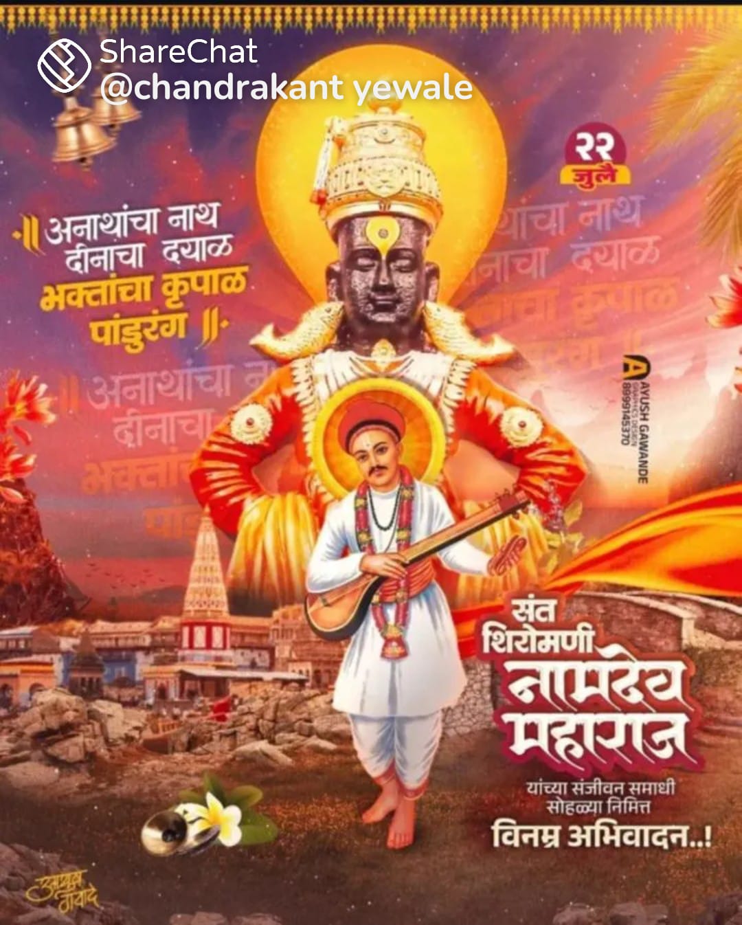 भक्तशिरोमणी संत नामदेव हे संत ज्ञानेश्वरांच्या कालखंडात होऊन गेले .वारकरी संप्रदायाचे प्रचारक नामदेव महाराज नामवेदाचे व नामविद्येचे आद्य प्रणेते असलेले महाराष्ट्रातील हे एक थोर संत होत. आपल्या कीर्तनकलेमुळे प्रत्यक्ष पांडुरंगाला डोलायला लावणारी अशी त्यांची कीर्ती होती. संत नामदेव प्रत्यक्ष श्रीविठ्ठलाच्या निकटवर्ती असलेला सखा होता, असे मानले जाते. संत नामदेव हे वारकरी संप्रदायाचे महान प्रचारक असून भारतभर त्यांनी त्या बाबतीत भावनिक एकात्मता साधली. भागवत धर्माची पताका पंजाबपर्यंत घेऊन जाण्याचे कार्य त्यांनी स्वकर्तृत्वाने केले.